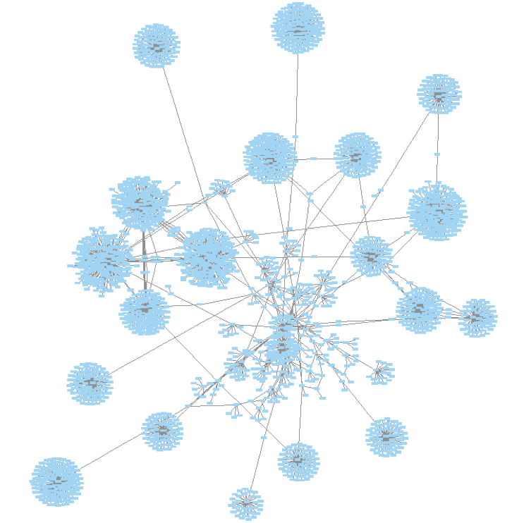 CoinHolmes 通过分析交易和地址库,通过可视化分析系统,观察到如下图一的巨大交易网络